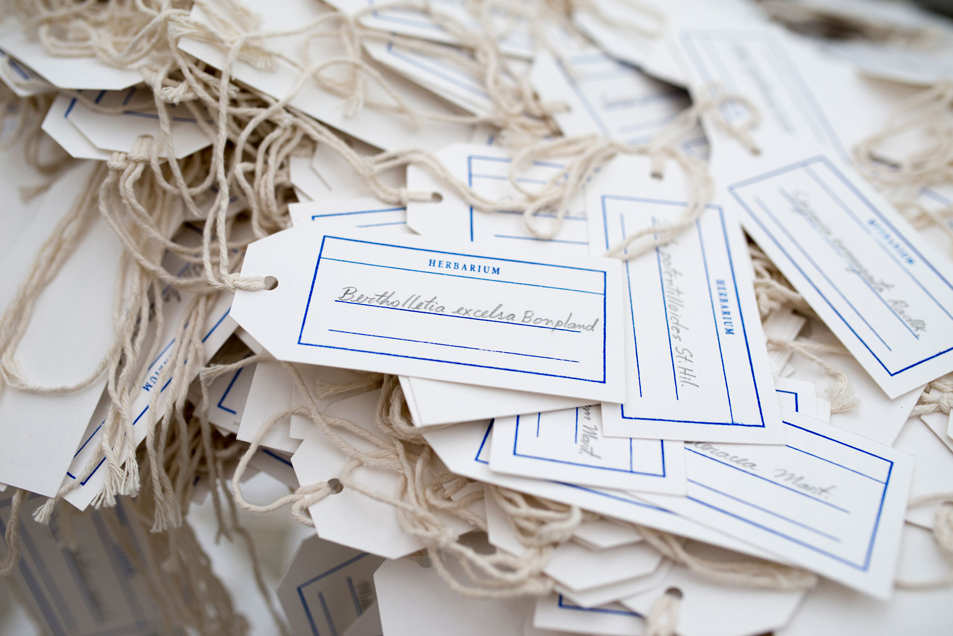 Na instalação de Moscheta, feita com a colaboração de seu pai, toda essa história é colocada em suspensão, com as estantes e pastas idênticas ordenadas e vazias – à espera de centenas de etiquetas desconectadas de suas espécies – como se um deus brincalhão tivesse embaralhado todo o trabalho feito até hoje e nos desse a chance de olhar novamente o jardim lá fora como pura alteridade.